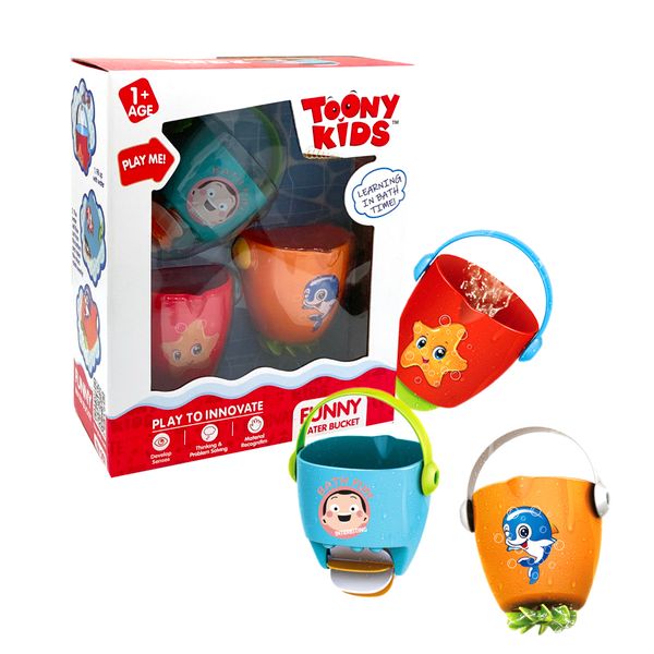 FUNNY WATER BUCKET - ĐỒ CHƠI NHÀ TẮM TOONYKIDS là bộ đồ chơi nhà tắm với chất liệu nhựa ABS, đặc biệt an toàn cho bé khi chơi.